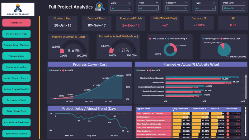 On the other hand, imagine that you instantly provide accurate answers within seconds without leaving the meeting. All you need is a laptop (or even a mobile phone). Moreover, you will be able to present the project progress like a pro. You can analyze any area in the project and recall the progress status on any data date with a click of a button. Not only will you impress the stakeholders with supreme skills but also scarce ones because very few planning engineers know how to use Power BI effectively. The meeting participants will be impressed by your beautiful dashboards, speed of analysis, convenience, reliability, practicality, valuable contributions, efficiency, clarity and professionalism. This is Project Control.